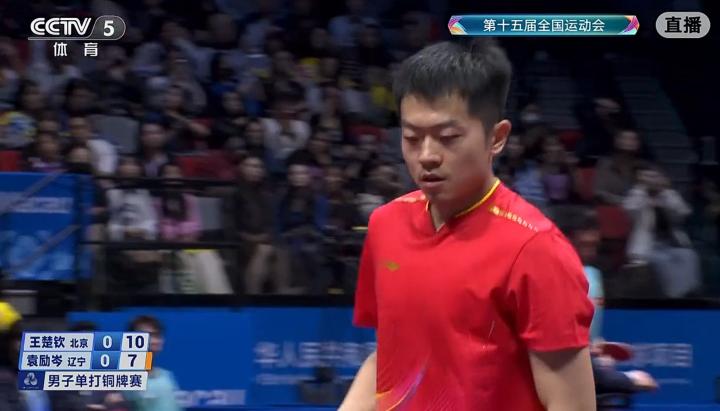 11月16日,全运会乒乓球男单铜牌赛,王楚钦4-1(11-9、11-8、4-11、11-5、11-7)战胜辽宁选手袁励岑,获得铜牌。